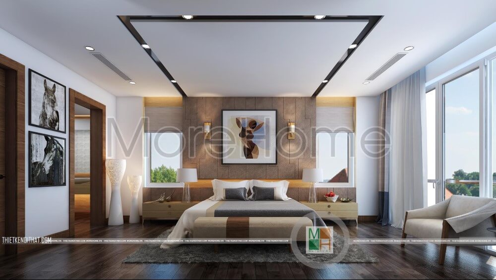 Phòng ngủ master với thiết kế hiện đại, lựa chọn nội thất gỗ cho không gian sáng và sang trọng hơn