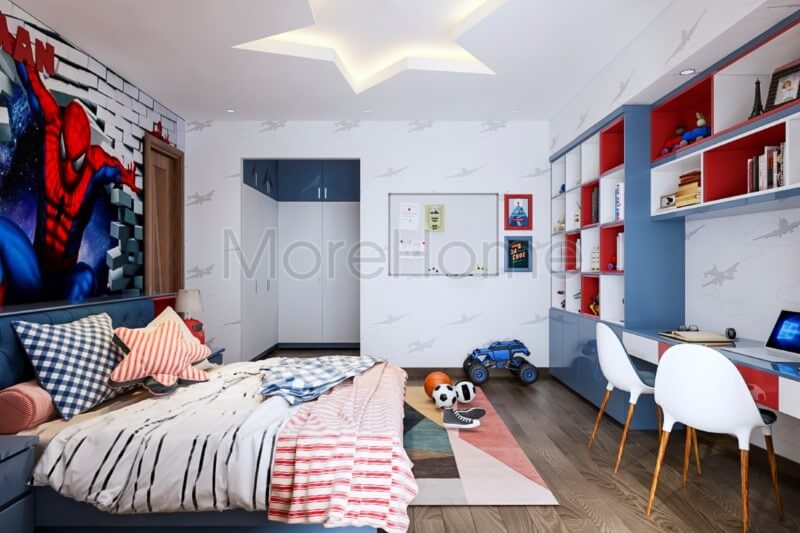 Thiết kế nội thất phòng ngủ bé trai với tông màu chủ đạo đỏ và xanh khơi dậy nguồn sáng tạo cho bé