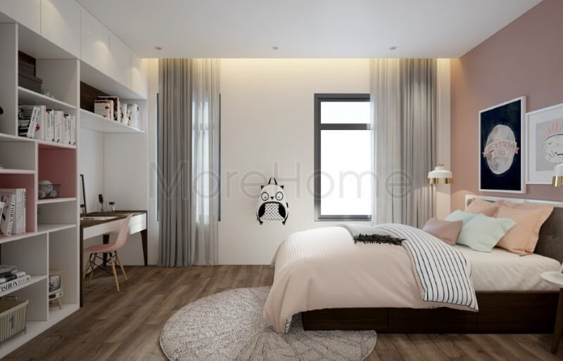 Thiết kế nội thất phòng ngủ cho bé gái với tông màu hồng nhẹ nhàng đephiện đại