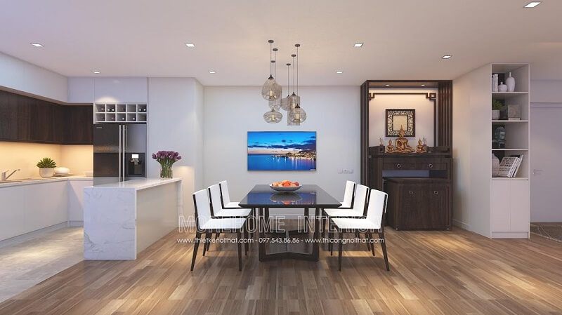 Bàn ăn hiện đại và độc đáo là sự lựa chọn tuyệt vời cho phòng ăn chung cư.