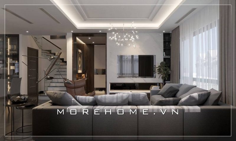 Mẫu thiết kế nội thất phòng khách của chung cư hiện đại được trang bị đầy đủ các tiện nghi, tạo nên một không gian thân thiện, thoải mái dành cho gia chủ.