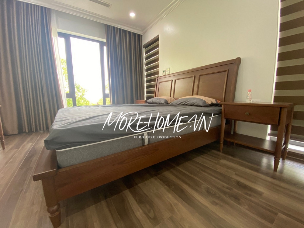 Mẫu phòng ngủ hiện đại trong các căn hộ sử dụng giường gỗ công nghiệp có độ đẹp và bền cao.